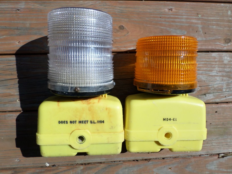 I found these lights in Galveston TX. They are from channel markers. The two lumps on the bottom are for batteries. They are made by the Jim Buoy company.