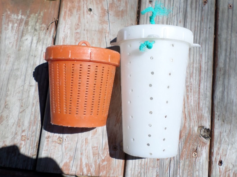 I went on a trip to Ireland and did some beachcombing. I found these nesting bait jars on the beach at Ross Beigh. They are set in a crab trap. The crab sits there for awhile until he gets the bait out (he never does). The white one says “Scotty Crab Diner nesting bait jar made in Canada. On the bottom it says “Scott Plastics Ltd Sidney BC Canada.
